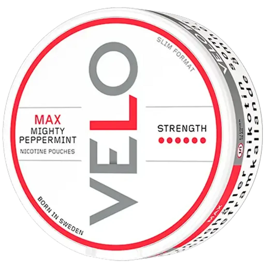 VELO Mighty Peppermint MAX are tobacco-free nicotine pouches with the freezing cold taste of mint. Made from plant-based materials, with extra nicotine added as 24mg/g. In the first of 2024, VELO Mighty Peppermint Max slim has launched, A redesign of VELO Freeze MAX but with the same flavor.